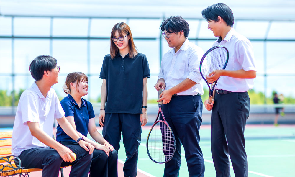大高本社の屋上は、スポーツができる広いスペースです。お昼休憩中には、キャッチボールやテニス、フットサル、トレーニングなどを楽しむ社員もいます!天気のいい日には、気持ちよく運動できる、元気になれるスポットです。
